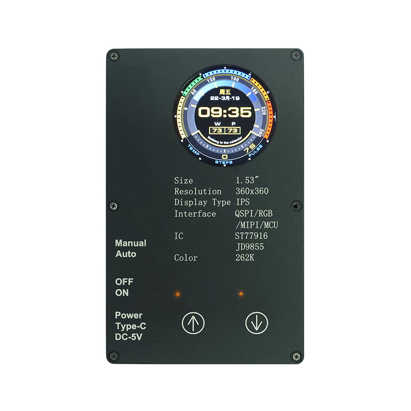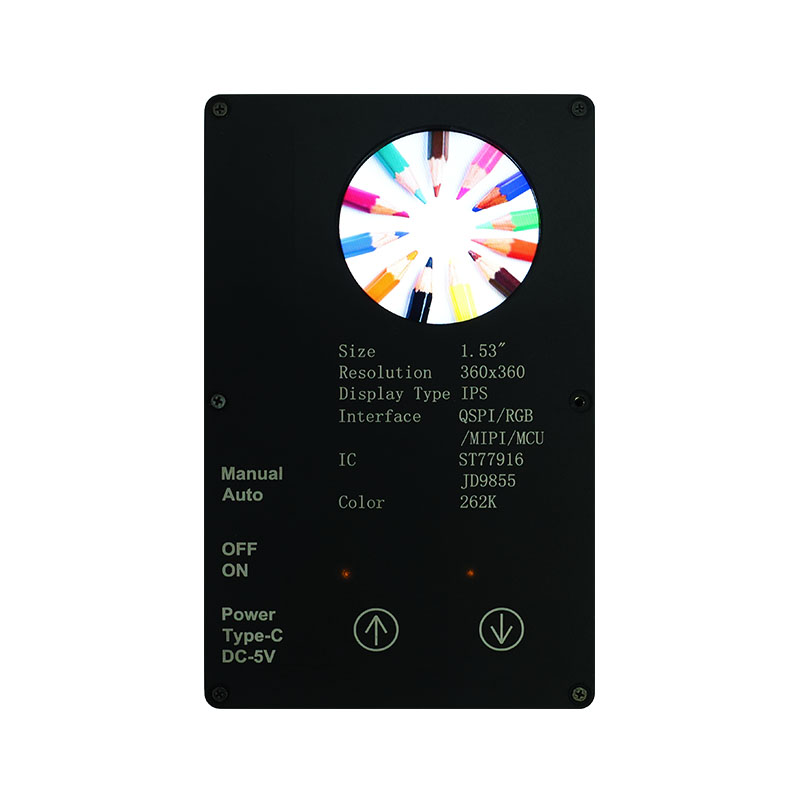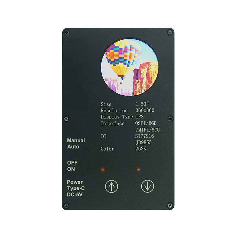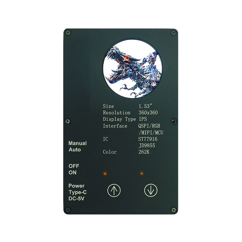 Bu xüsusi ekranda 360 × 360 yüksək qətnamə, bütün görüntü açıları və 400 CD / M² yüksək parlaqlıq var. Bir sənaye dərəcəli əməliyyat temperaturu aralığı ilə (-20 ℃ ~ 70 ℃), Mite çıxarılması cihazları və şirəçəkənlər kimi ağıllı ev tətbiqlərində aydın və sabit performans təmin edir. QSPI interfeysi və ST77916 Drive IC yüksək sürətli məlumat ötürülməsini təmin edir, yığcam modul ölçüsü (40.46 × 41.96 × 2.16mm) kosmik səmərəliliyini artırır.