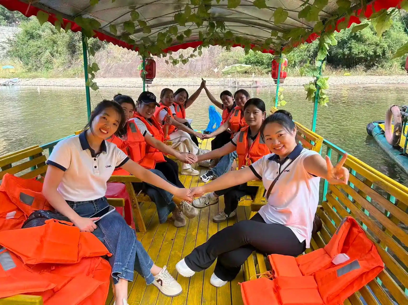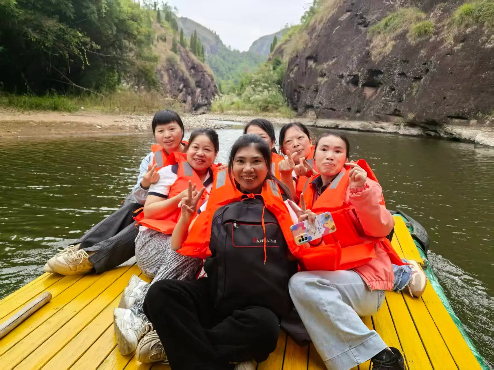 Günortadan sonra cədvəli daha rahat idi. Bütün komanda, təəccüblü mənzərənin on li lici vasitəsilə səhnə kruizi üçün bambuk raftlarına mindi. Danxiya dağları və zümrüd suları arasında sürüşərək, "yaşıl dağlar qaranlıq qaş və ipək kimi təmiz sular kimi dayanan kimi" mənzərəli mənzərələrə heyran oldular. 3,2 kilometrlik su marşrutu boyunca, hamı rahatlaşdı, özlərini əmin-amanlıq və təbiətin gözəlliyinə salır.